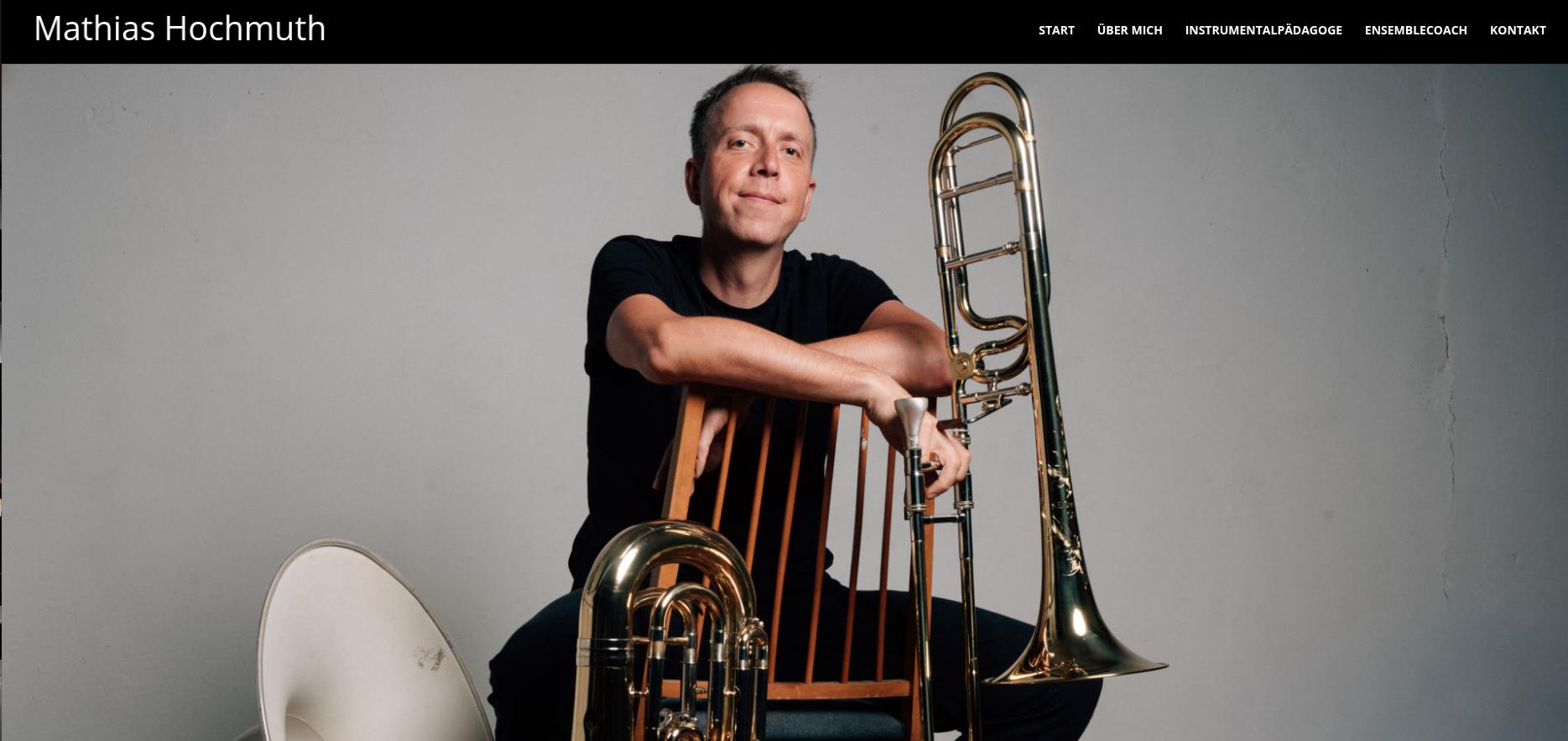 Für Mathias Hochmuth (u.a. bekannt von den Cakewalkin’ Babies) sollte eine eigene Homepage entstehen, die seine Arbeit als Posaunist und Instrumentalpädagoge klar präsentiert – ohne Umwege, aber mit Persönlichkeit.